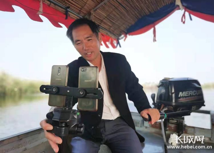 邵小贝在游船上进行网络直播。长城网记者李元华 摄