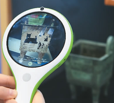 第十七届中国(深圳)国际文化产业博览交易会上,众多参展团带来5G、物联网等共性技术在文化产业领域的集成应用和创新。图为参观者用“AR探究镜”扫描文物模型,了解文物信息。新华社记者毛思倩 摄