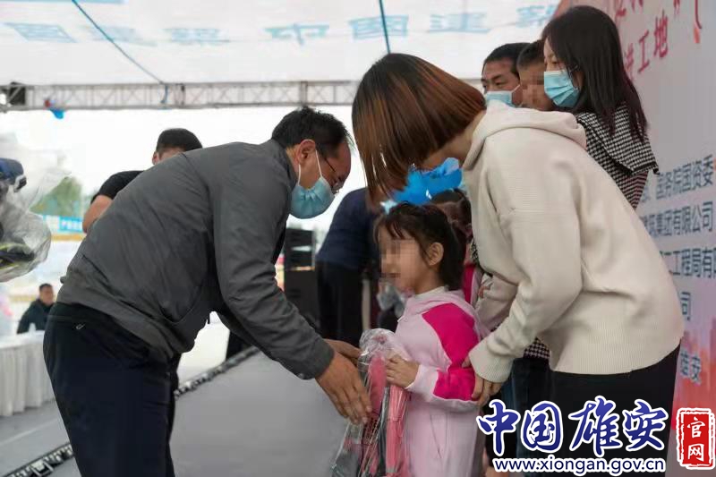 活动现场,外来务工人员及其家属子女来到新区项目建设一线,参观了容东片区2号地项目智慧展馆,感受新区建设成果。主办方为新区建设者及其家属安排了小品《超级奶爸》、舞蹈表演、歌曲《为你筑巢》等精彩节目,宣讲了农村留守儿童家长教育知识,并邀请新区建设者家属做亲子互动游戏。最后,主办方为新区建设者及其子女发放学习用品及爱心大礼包,送上了温暖与关怀。