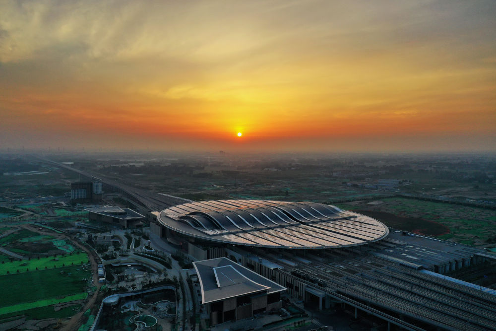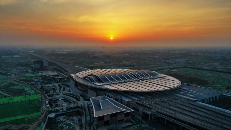 这是7月1日拍摄的京雄城际铁路雄安站(无人机照片)。新华社记者 牟宇 摄