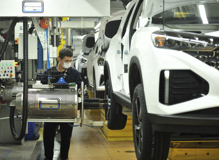 工人在北京现代沧州工厂车身车间工作(3月3日摄)。新华社记者 杨世尧 摄