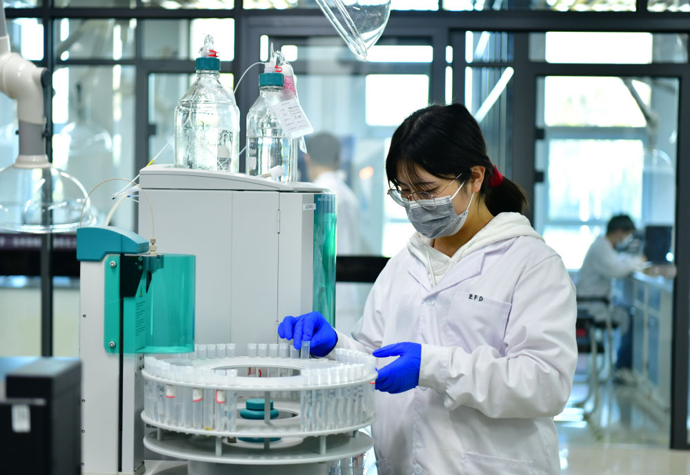 研发分析人员在南开大学·沧州渤海新区绿色化工研究院分析测试中心工作(10月12日摄)。新华社记者 杨世尧 摄
