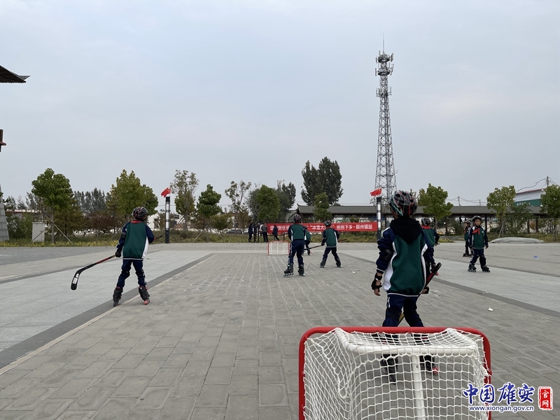 孩子们在公园广场进行陆地冰球训练。雄县教育局供图