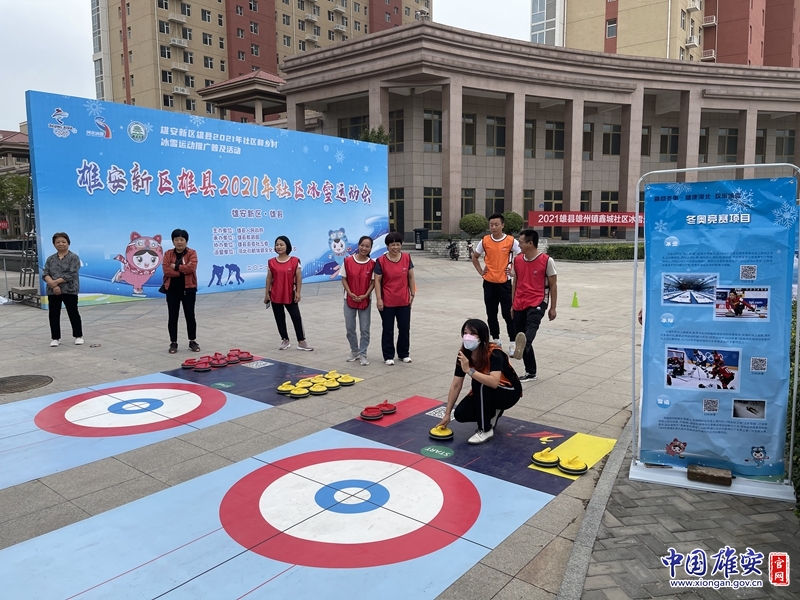 社区冰雪运动会上,居民体验陆上冰壶。(资料图)雄县教育局供图