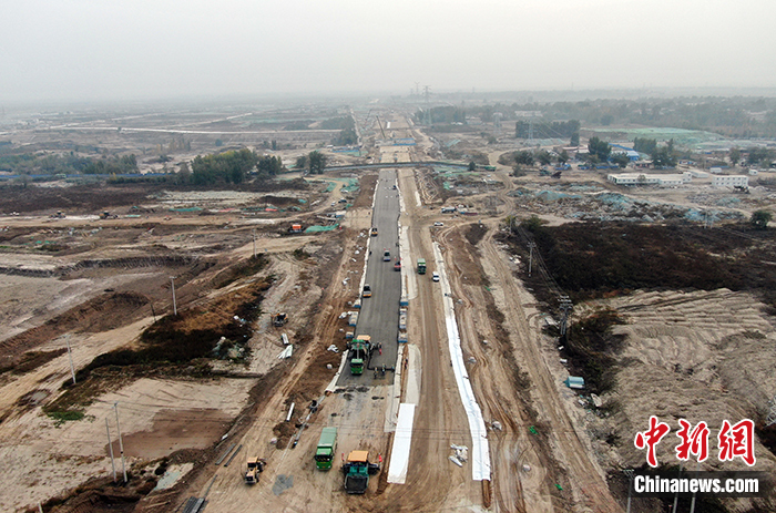 图为10月28日,航拍启动区管廊项目施工现场。(无人机照片)中新社记者韩冰 摄