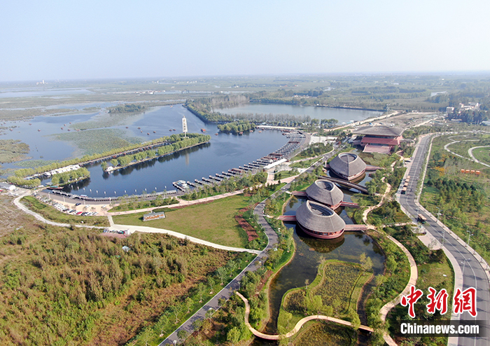 图为10月1日,航拍雄安新区安新县白洋淀景区码头。(无人机照片)中新社记者韩冰 摄