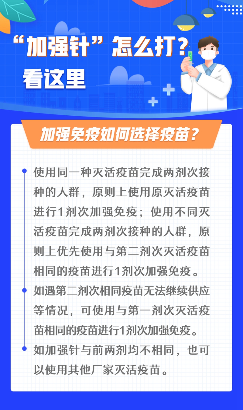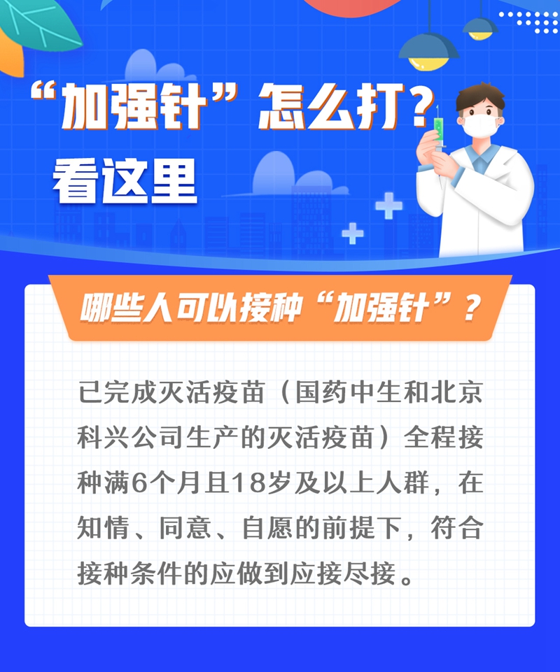 近日,多地开展新冠疫苗“加强针”接种工作。哪些人群可以接种“加强针”?“加强针”疫苗如何选择?一组海报带你了解!