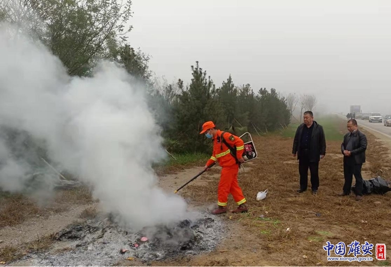 刘树军一行首先实地检查了保静线沿线祭祀用火管控情况,随后来到雄县张岗乡政府,详细询问了“寒衣节”期间对森林草原防灭火工作的部署情况。检查发现,仍有个别群众在道路西侧烧纸祭祀,森林消防队员当即对火点进行了扑灭,并对相关群众进行了劝导教育。