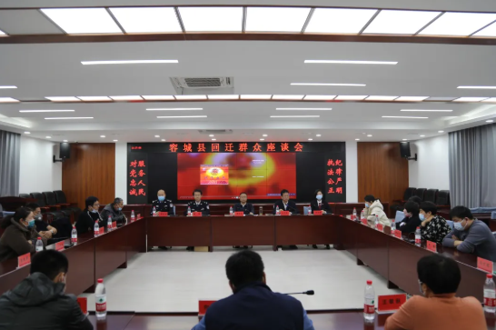 11月6日,容城县召开回迁群众座谈会,县委书记黄志民等县领导与部分回迁群众面对面交流,宣讲回迁政策,解答群众疑惑,助力征迁群众顺利回迁、幸福入住。