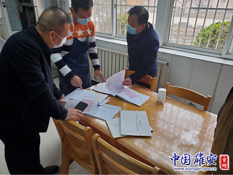检查组检查鄚州中心敬老院疫情防控工作台账。中国雄安官网发