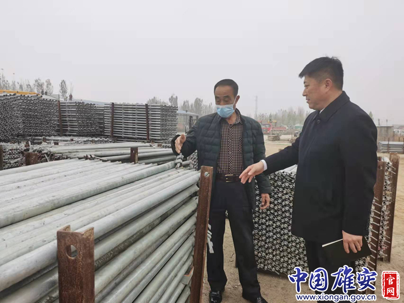 农行容城县支行工作人员对王顺来的脚手架租赁公司进行调研。中国雄安官网封俊龙 摄