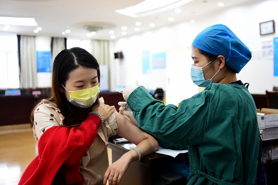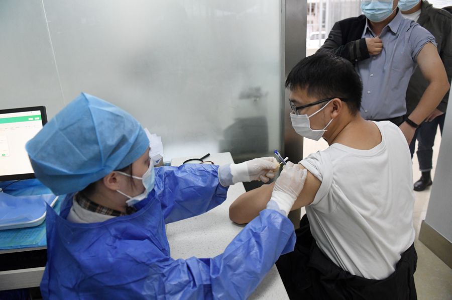 11月2日,在南宁市青秀区方园社区卫生服务中心,医务人员给居民接种新冠疫苗加强针。新华社记者陆波岸 摄
