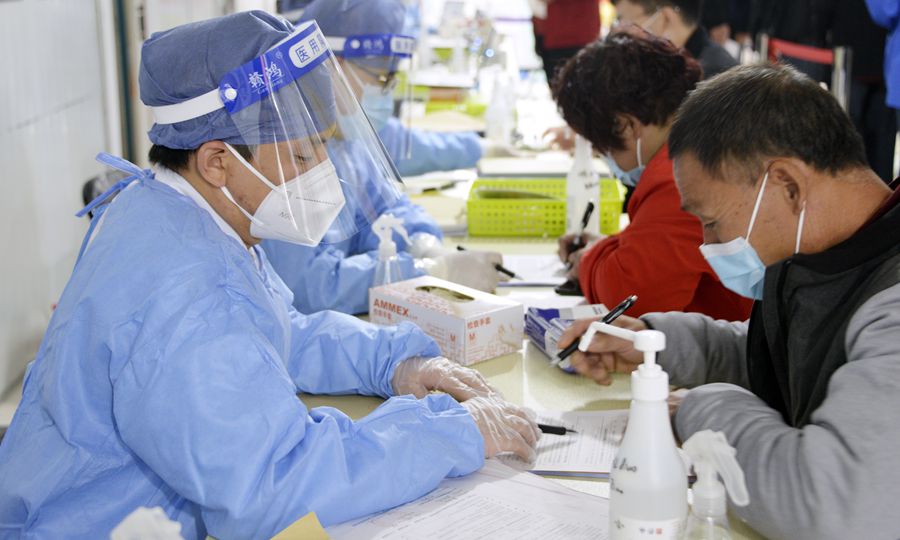 10月25日,北京市大兴区旧宫镇的居民准备接种疫苗加强针。新华社记者李欣 摄
