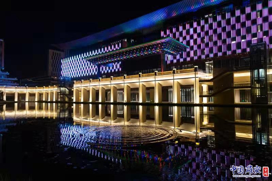 雄安商务服务中心会展中心夜景。中国雄安官网高盟 摄