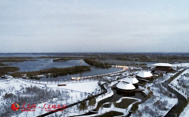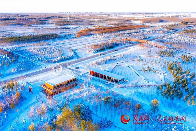 2021年雄安新区的第一场雪,比往年来得更早、更猛一些。雪后初霁,阳光洒在大地上、树林间,映照得雄安美如画卷。“千年秀林”、悦容公园、白洋淀码头、容东片区安置房……处处都美得动人心魄。