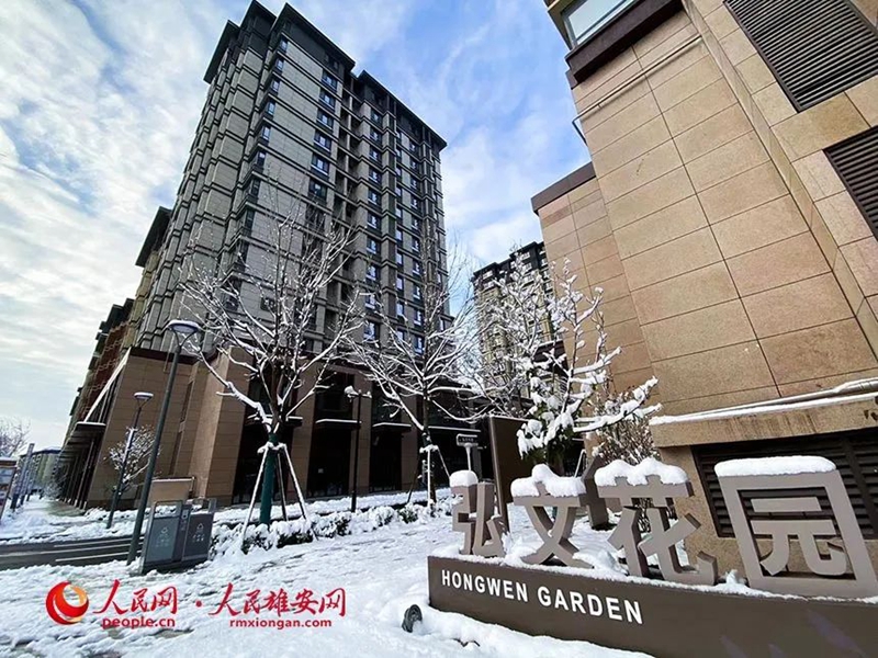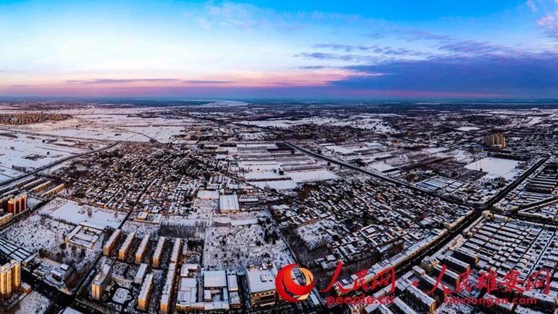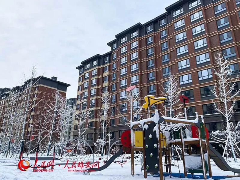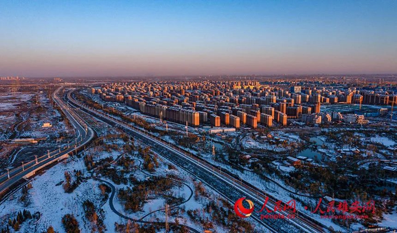 航拍雪后雄安容东片区安置房。人民网李兆民 摄