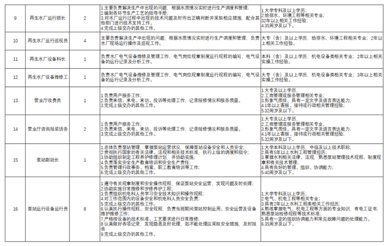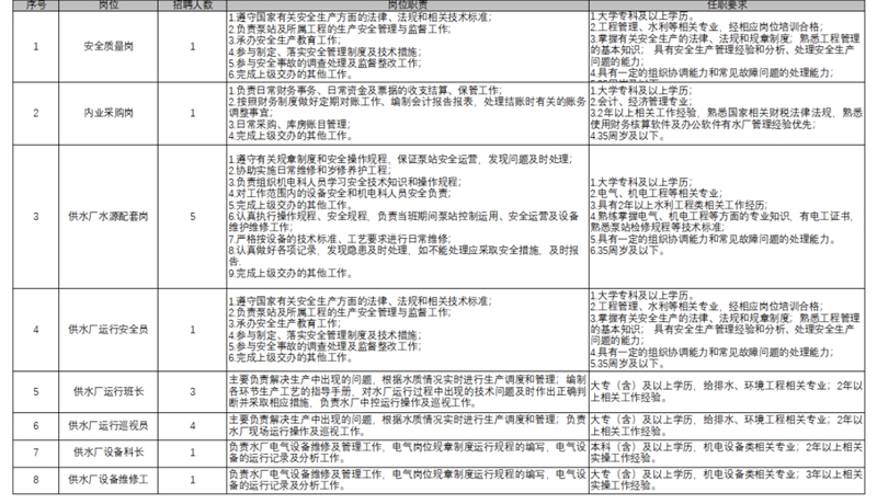 雄安新区供水厂、再生水厂、官网客服中心和大树刘泵站等水务设施,根据工作需要面向社会公开招聘从事水厂、泵站的运营管理和管网客服管理相关工作的人员。