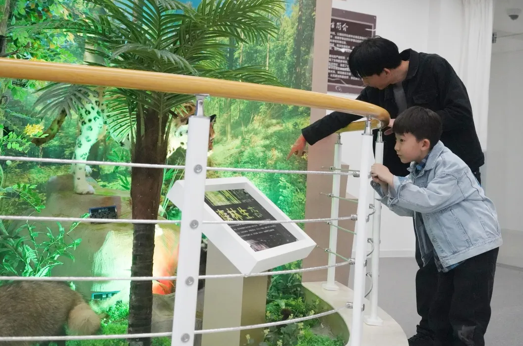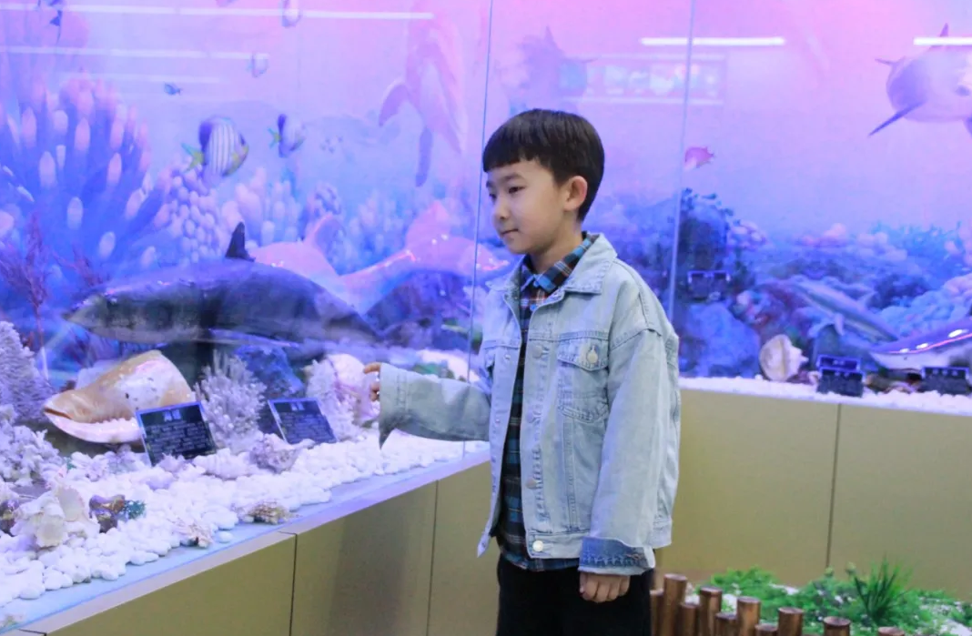 远处传来一阵鸟鸣声,吸引着我和爸爸走进了学校独有的自然生态馆,里面有好多生态展区和标本展区,我可以尽情探索大自然了。