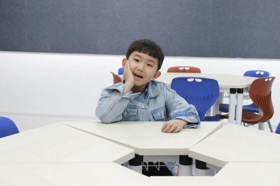 哇,这是我第一次见到这样的教室桌椅,真特别,听校长阿姨说,这些桌椅还可以移动呢!想象着我能坐在这样的教室里学习,好兴奋!