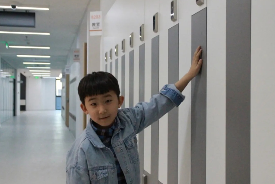 每个教室门口都有钢琴键小柜子,真漂亮呀,它可以存放我们的书包和物品,看来我以后就不用背着重重的书包进教室啦。