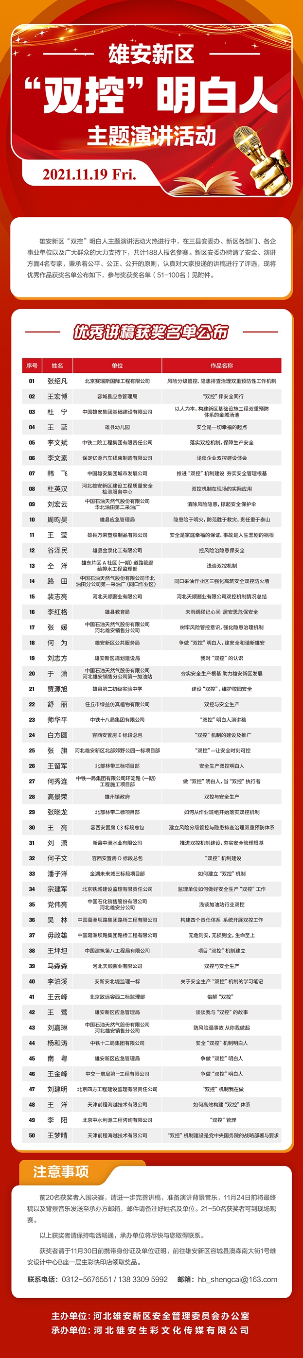 雄安新区“双控”明白人主题演讲活动获奖名单公布