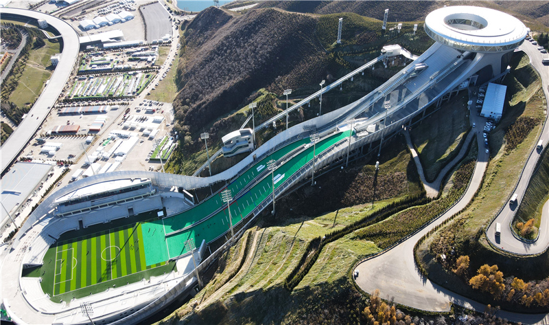 10月20日拍摄的张家口赛区国家跳台滑雪中心“雪如意”(无人机照片)。新华社记者金皓原 摄