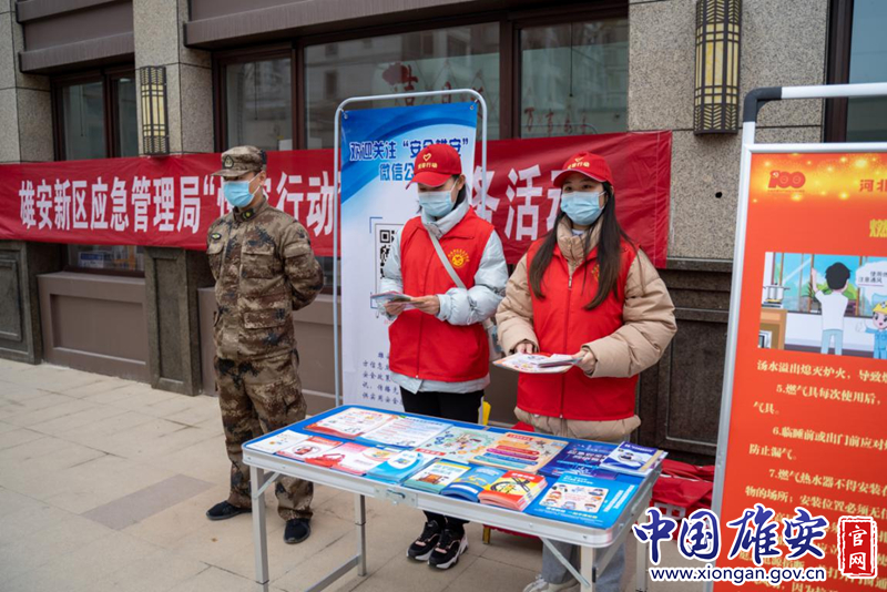 雄安新区应急管理局安全宣传志愿者服务队设置了安全宣传咨询台。中国雄安官网刘东尧 摄