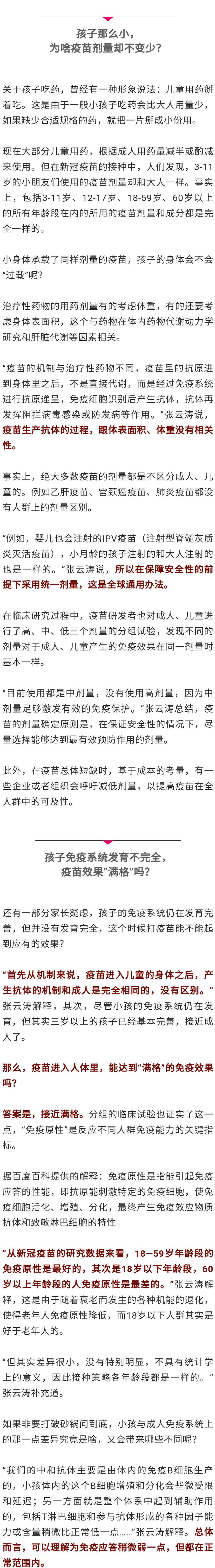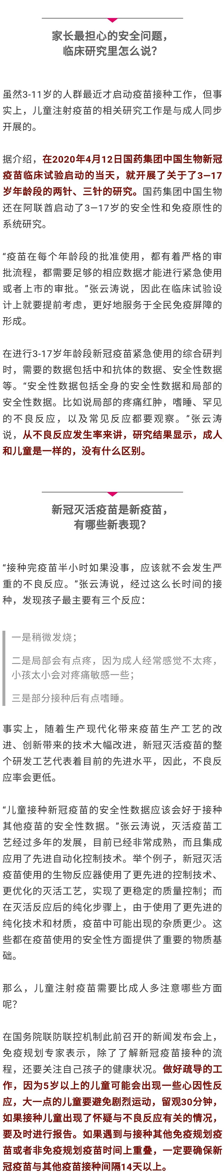 据说这些现象都是接种疫苗的正常反应。知其然不知其所以然的家长心里还是会犯嘀咕:孩子的疫苗剂量为啥和大人一样?究竟啥反应是正常的?11月20日,记者专访了国药集团中国生物首席科学家张云涛,扫清困惑。