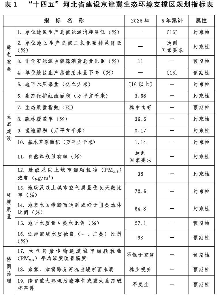 河北省建设京津冀生态环境支撑区“十四五”规划