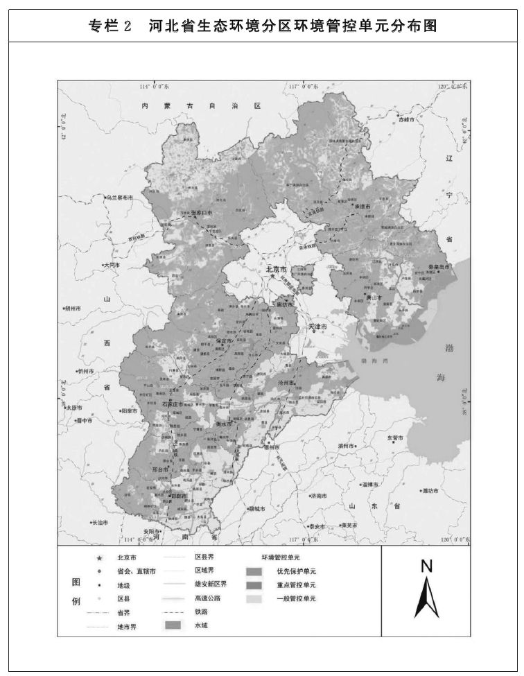 根据《京津冀协同发展规划纲要》《京津冀协同发展生态环境保护规划》《河北省主体功能区规划》、“三线一单”、国土空间规划等,综合考虑自然和社会经济条件、生态系统特征,以县(市、区)为基本单元,将全省分为环京津生态过渡带、坝上高原生态防护区、燕山-太行山生态涵养区、低平原生态修复区、沿海生态防护区五个区域。