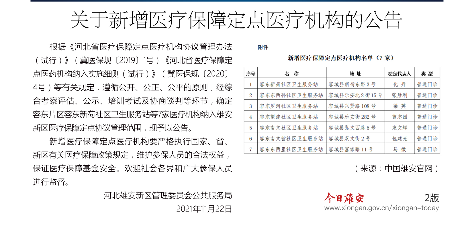 【雄安之声】雄安新增7家医疗保障定点机构