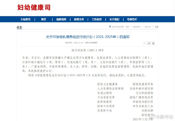 近日,国家卫健委等十五部门联合印发《母乳喂养促进行动计划(2021-2025年)》。计划提出,到2025年,母婴家庭母乳喂养核心知识知晓率达到70%以上,公共场所母婴设施配置率达到80%以上。计划要求,保护哺乳期女职工权益,用人单位要切实落实女职工劳动保护相关规定,确保女职工享受产假、生育奖励假,合理安排哺乳期女职工的哺乳时间。对哺乳未满1周岁婴儿的女职工,用人单位应当在每天的劳动时间内为其安排1小时哺乳时间;女职工生育多胞胎的,每多哺乳1个婴儿每天增加1小时哺乳时间,哺乳时间视同提供正常劳动。用人单位不得因女职工哺乳降低其工资福利待遇、予以辞退或解除劳动(聘用)合同。(徐鹏航)