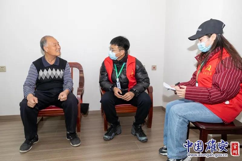 容东片区望淀社区的工作人员向刘志安询问入住相关情况。中国雄安官网毛鹤然 摄