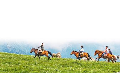 在涞源县空中草原景区,十八盘村村民带着游客骑马游玩。河北日报记者 赵杰 摄