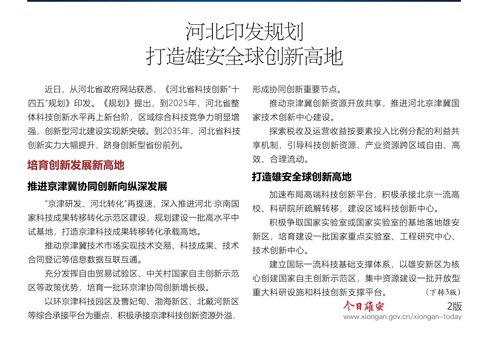 【雄安之声】河北:“十四五”期间全社会研发经费年均增长率将达10%