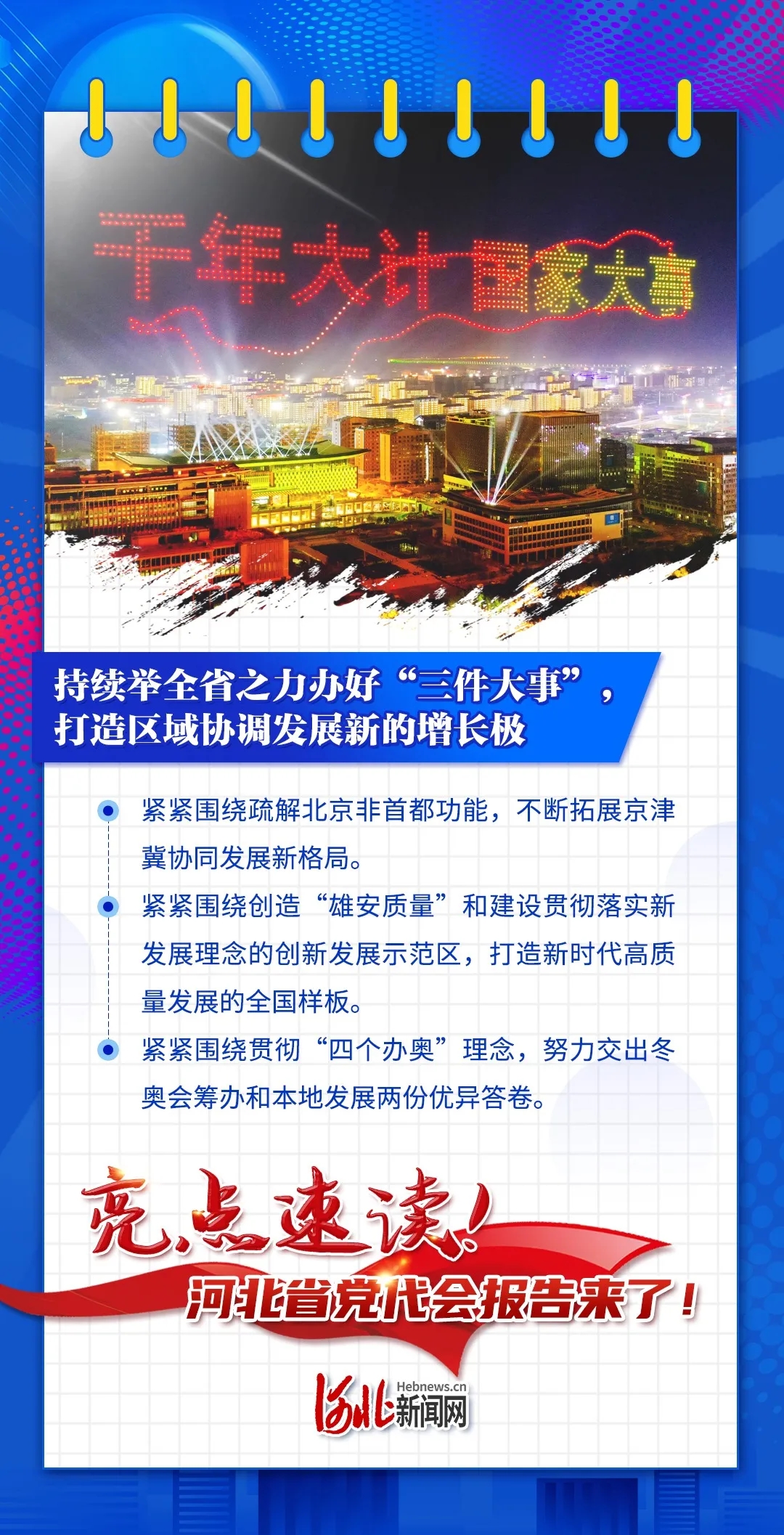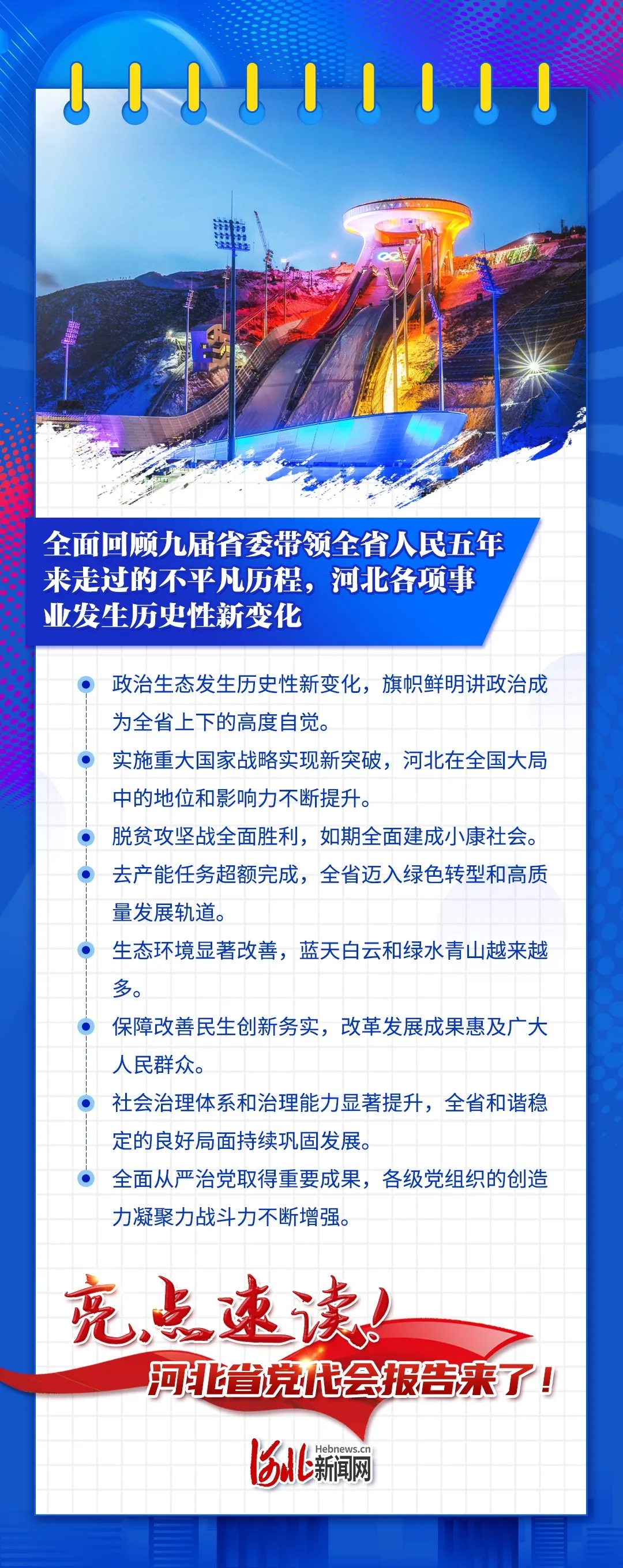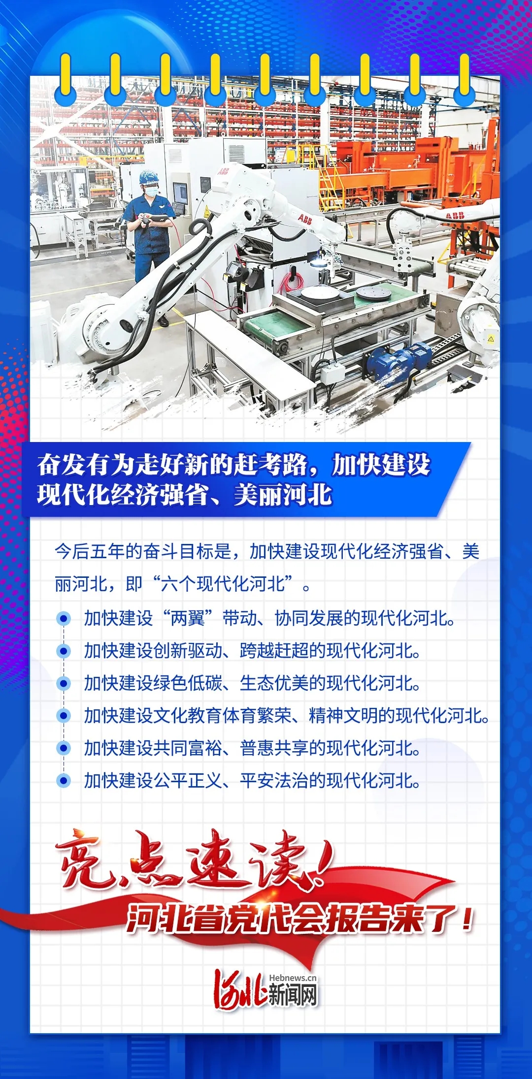 11月26日上午9时,中国共产党河北省第十次代表大会在石家庄河北会堂开幕。王东峰代表中国共产党河北省第九届委员会向大会作题为《走好新的赶考路 拼搏奋进新征程 加快建设现代化经济强省美丽河北》的报告。报告有哪些亮点?一起速读报告。