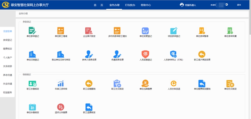 “雄安智慧社保网上办事大厅”业务办理页面。中国雄安官网发