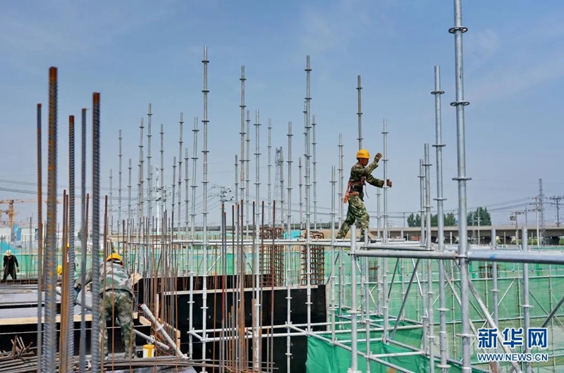 2021年7月3日,中铁十二局的工人在雄安新区容西片区建设现场施工。新华社记者杨世尧 摄