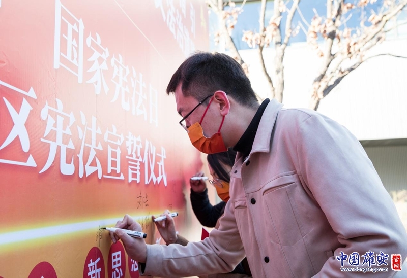 “我宣誓:忠于中华人民共和国宪法,维护宪法权威,履行法定职责……”当日上午,在雄安市民服务中心会议中心门前,新区各部门以及雄安集团工作人员代表右手握拳,进行庄严宣誓。
