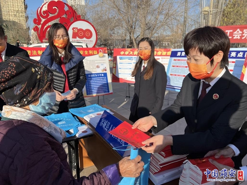 当天,雄安新区雄县、容城县及安新县检察院分别开展形式多样的普法宣传活动。活动期间,雄安新区及三县检察院累计向群众发放宣传资料及宣传单2000余份。