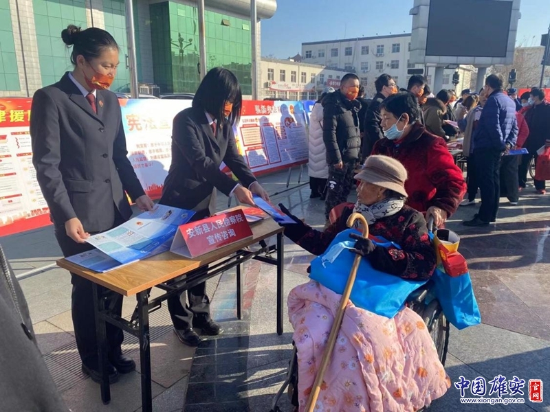 雄县检察院干警在雄县政府广场热情宣讲。雄县检察院供图