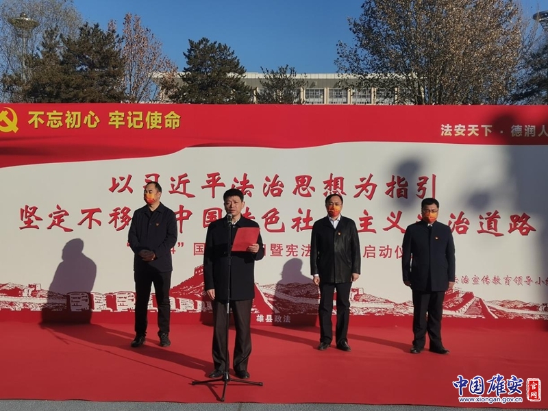 中国雄安官网12月5日电(李雪娇)12月4日上午,雄县法治宣传教育领导小组在政府广场组织开展了以“以习近平法治思想为指引 坚定不移走中国特色社会主义法治道路”为主题的国家宪法日暨宪法宣传周启动仪式。雄县县委常委、政法委书记、县法治宣传教育领导小组组长李洪波,人大常委会副主任张秋乐等出席本次活动。各乡镇、县直部门、政法机关、教育系统代表及社区群众代表参加了集中宣传活动。活动由雄县县委政法委常务副书记、县法治宣传教育领导小组办公室主任滕宝龙主持。