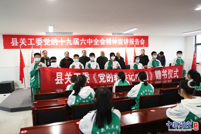中国雄安官网12月10日电(李元闯)为深入学习贯彻党的十九届六中全会精神,教育引导青少年学生听党话、跟党走,12月9日下午,容城县委组织部、容城县关工委、容城县教育局党的十九届六中全会宣讲团走进容城镇一中,举办党的十九届六中全会精神宣讲报告会暨《党的教导记心间——学习笔记》赠书仪式。容城镇一中80余名师生聆听本次宣讲。