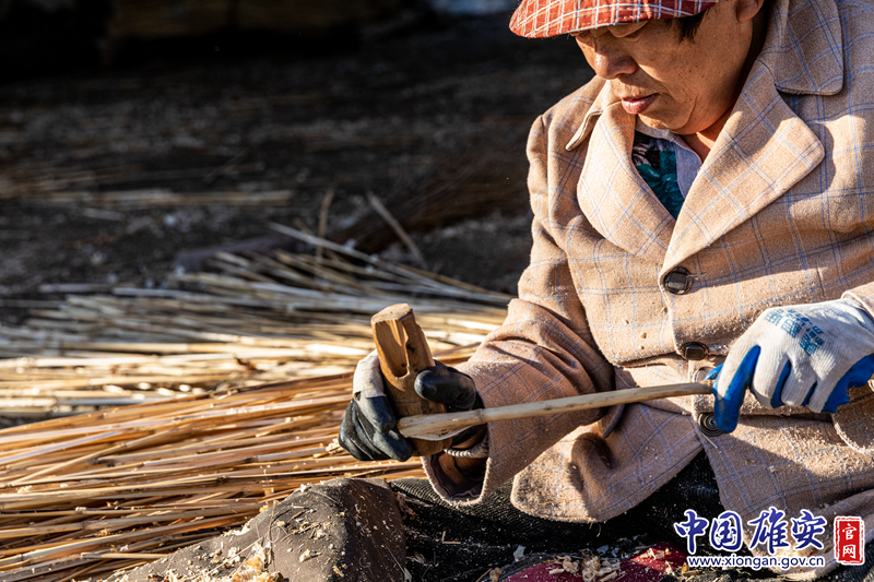 在合作社里,随处可见村民手持工具劈芦苇的身影,随着利落的“咔嚓”声,芦苇杆一分为二,进入下一步编织工序。李建光说,最忙碌的时期,合作社有400多人,这道割芦苇的工序按计件算工资,一天下来,村民可以收入一二百元。中国雄安官网毛鹤然 摄