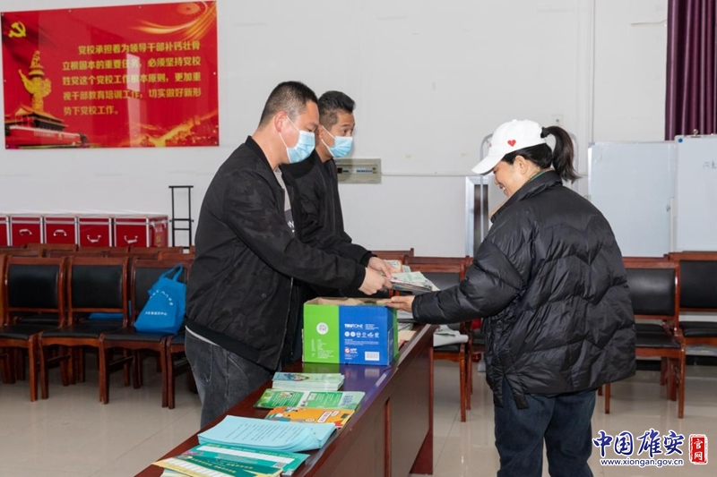 在安全宣传活动“五个一”活动进农村现场,雄县黄湾村村民领取安全宣传资料。中国雄安官网毛鹤然 摄