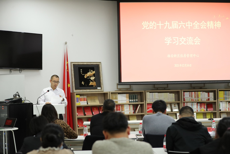 为深入学习党的十九届六中全会精神,持续兴起学习宣传贯彻的热潮,12月16日下午,雄安新区住房管理中心组织中心全体党员干部召开党的十九届六中全会精神学习交流会,与会同志踊跃发言。雄安新区住房管理中心主任陆长明要求中心党员干部要学以致用,为新区建设全力以赴。