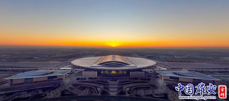 落日余晖下的京雄城际铁路雄安站。任双欢 摄