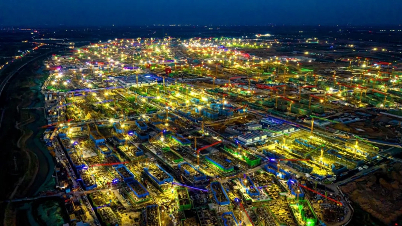 项目施工现场塔吊林立灯火通明。刘向阳 摄