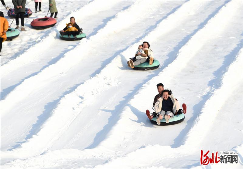 在唐山,冰雪活动也成为元旦期间不少人休闲娱乐的热门选择。唐山文旅集团打造的皮影主题乐园冰雪欢乐季活动,在元旦前一天开幕,人们在紧张刺激的极速雪道上驰骋,在以“雪如意”为原型建设的冰滑梯上飞驰而下。