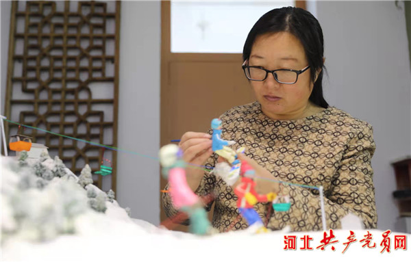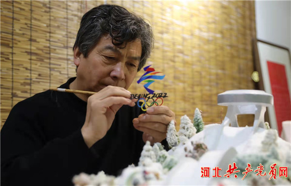 2022年1月5日,河北省张家口市非遗传承人在塑造冰雪运动人物形象。